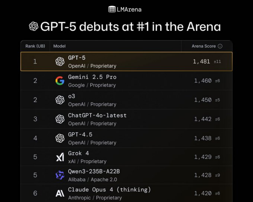 在Intelligence Analysis获得的预览访问中,GPT-5同样获得了第一名。