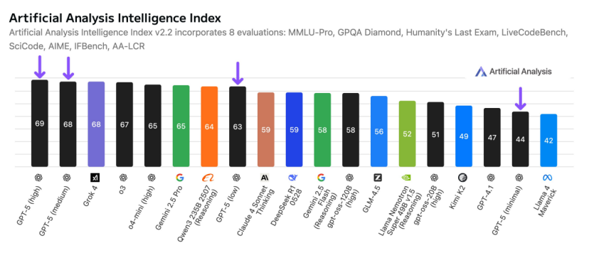 GPT-5 的全面智能化程度显著提升,这体现在它在学术和人工评估基准测试中的表现上,尤其是在数学、编码、视觉感知和健康领域。