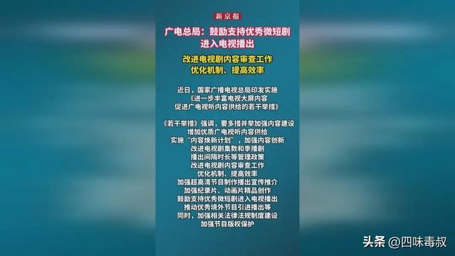 国家广电总局在指导短剧发展的方向与政策上,目前总体依然是鼓励精品短剧的生产,杜绝部分不符合主流价值观的短剧出现。