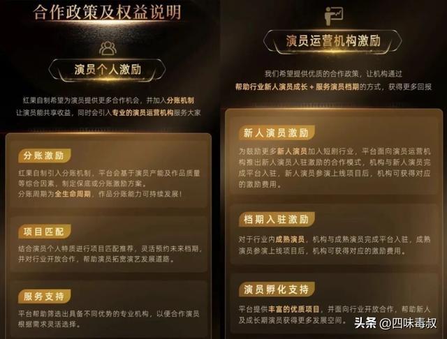 通过上述手段倒逼制作方提升产品质量,淘汰低质团队。鼓励编剧工作室与演员机构规模化、正规化,与平台深度绑定(参见此前红果出台演员分账机制相关文章),同时形成分账体系,强化行业专业性。