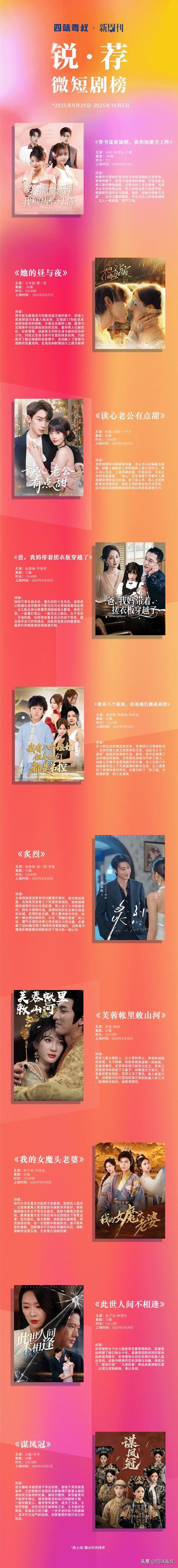 本次「锐·荐微短剧榜」周榜第33期(2025年9月29日——2025年10月5日)