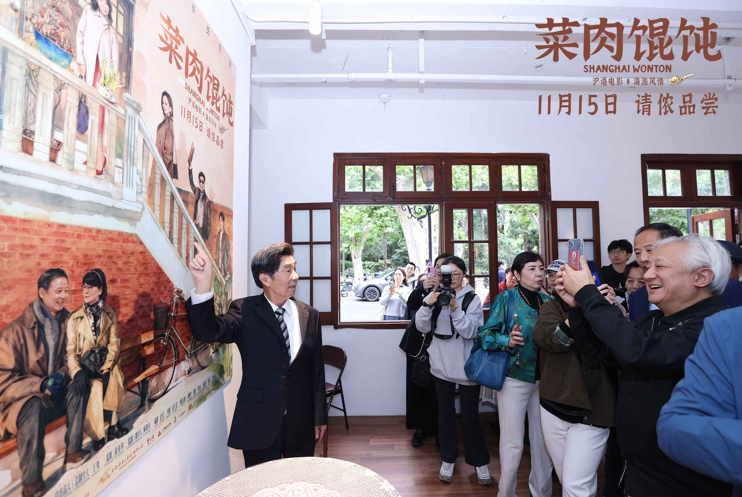 仪式结束后,电影主创们带领嘉宾与媒体朋友们参观了菜肉馄饨·思南会客厅。周野芒化身“一日店长”并为现场嘉宾点单,同时向大家介绍会客厅展区及多样丰富的趣味互动环节,并在现场用沪语和普通话深情朗诵小说原文,分享电影故事的同时也传播海派文化,与到场嘉宾、观众共享轻松愉悦的光影时光。