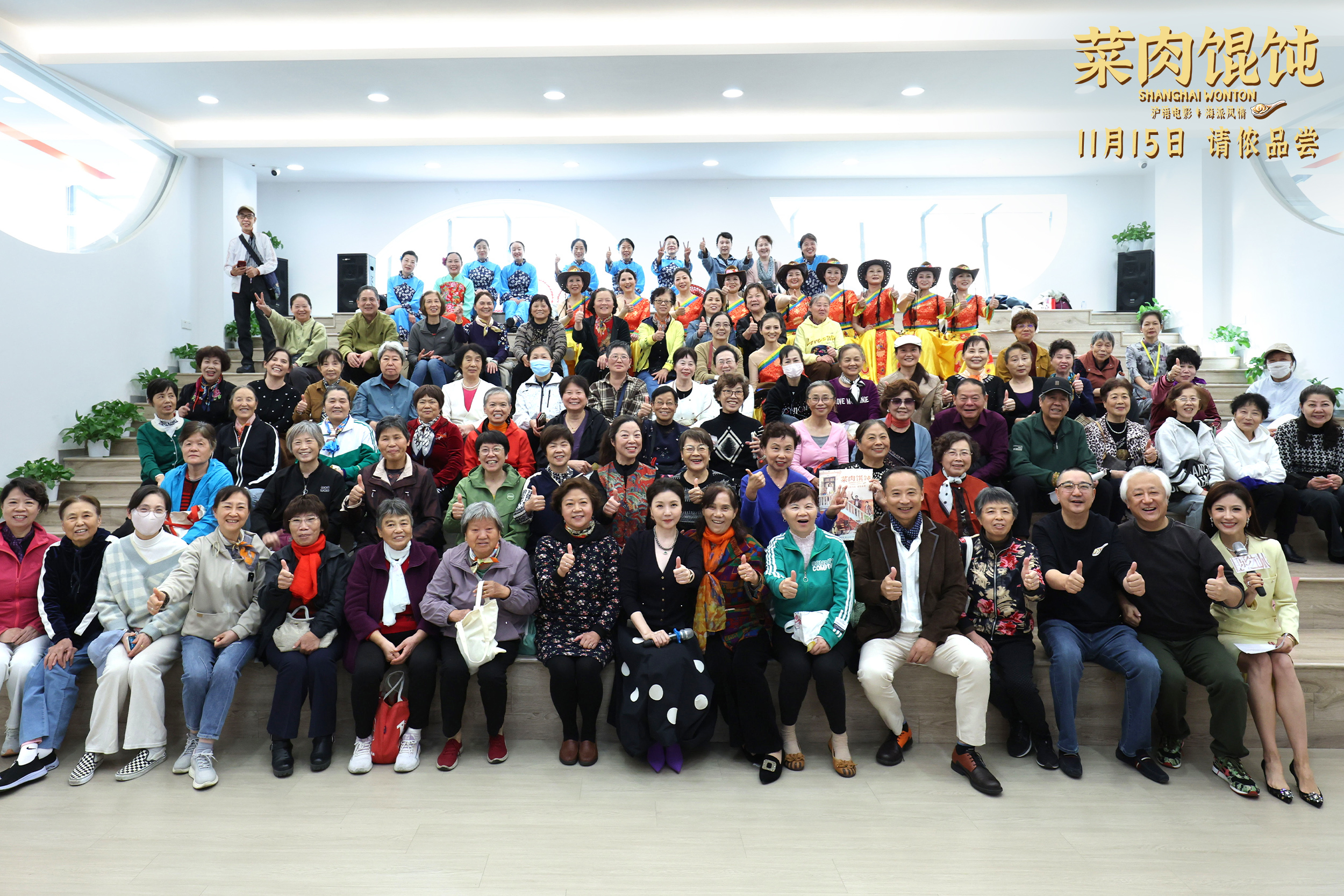 第二站是江川社区,主创到场立即引发一阵热烈的掌声,居民中很多都是两位主演的粉丝,见到偶像时,阿姨们犹如少女一般激动,表达着对于演员的喜爱,表示电影上映一定去影院支持。为了感谢居民们的厚爱,茅善玉一边包馄饨,一边唱起沪剧选段,台下的阿姨们也跟着合唱。茅善玉声线婉转动听、令人陶醉,瞬间勾起大家对于老上海的回忆,与居民阿姨们的声音相融,更多了一份质朴温暖的生活气息,一时间,现场回荡着充满吴侬软语的优美歌声。