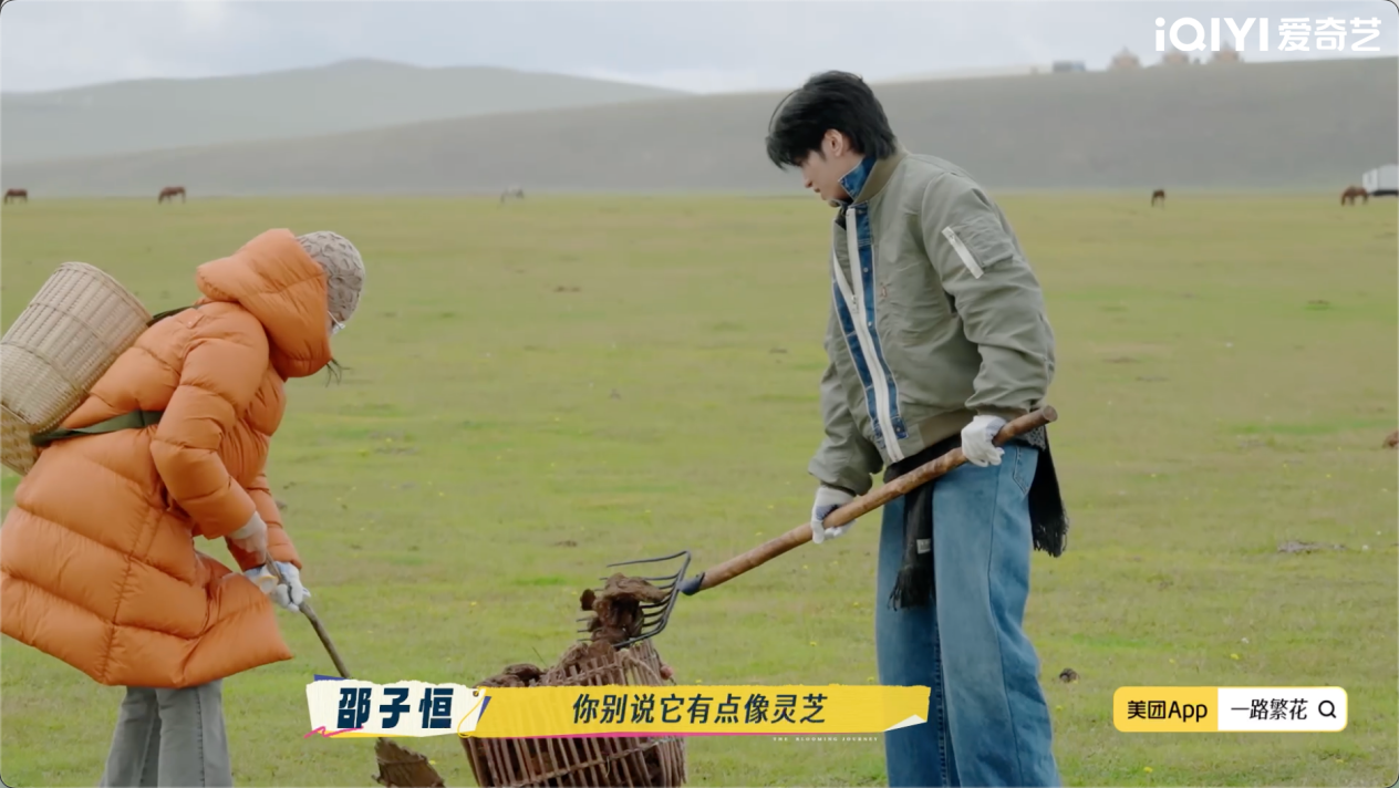 第二期节目中,繁花团成员走进莫尔格勒河畔的当地牧民家庭,体验捡牛粪、挤牛奶、喂小羊、煮奶茶、赶羊群等一系列牧民生活。这一体验打破了传统旅综“浅尝辄止”的游览模式,转而通过体力劳动与环境互动,构建起人与土地之间的真实连接。