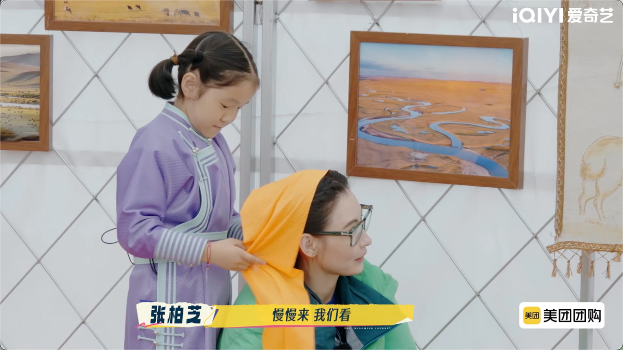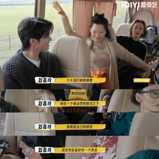 在前往牧民家庭途中,随身携带音响设备的邵子恒便带领大家即兴开启“草原KTV”,姐姐们合唱黄梅戏《天仙配》,弟弟们忙着找伴奏、递话筒,车内歌声笑声交织。刘嘉玲感慨:“今天我们唱歌跳舞,在一个自然的状态下释放自己,我觉得是最好的状态。”这一刻,繁花团人与人之间最本真的情感悄然流动。