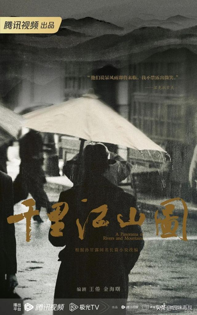 36集民国谍战剧《千里江山图》由汪俊执导,陈道明监制,王倦、金海曙编剧,改编自同名长篇谍战小说。陈道明、张若昀、刘诗诗、王传君、关晓彤、张宥浩等主演。该剧围绕1933年上海一场中共地下党员秘密会议展开,因组织内部出现叛徒,党员陈千里(张若昀 饰)临危受命,要从与会者中找出叛徒,肃清队伍。