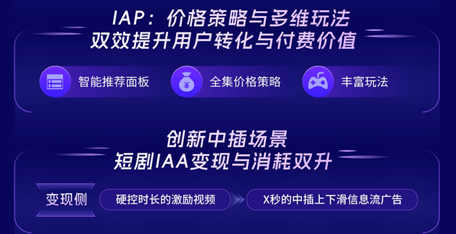 而IAA近期上线的中插能力效果同样非常出色,从之前用户需要硬控时长去刷激励广告的形式,变成了现在只需要几秒且在集与集之间上下滑信息流广告的形式,用户的广告接受度更高,同时也极大地降低了看剧的阻塞感。这一升级实现看广告人数和次数的显著提升,带动短剧IAA变现与消耗增长。