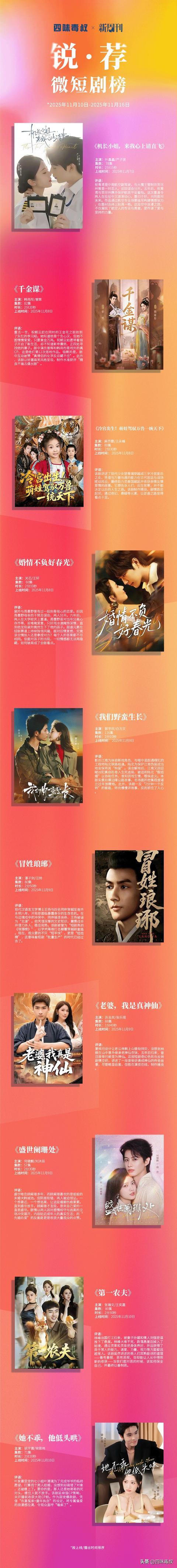 本次「锐·荐微短剧榜」周榜第39期(2025年11月10日——2025年11月16日)