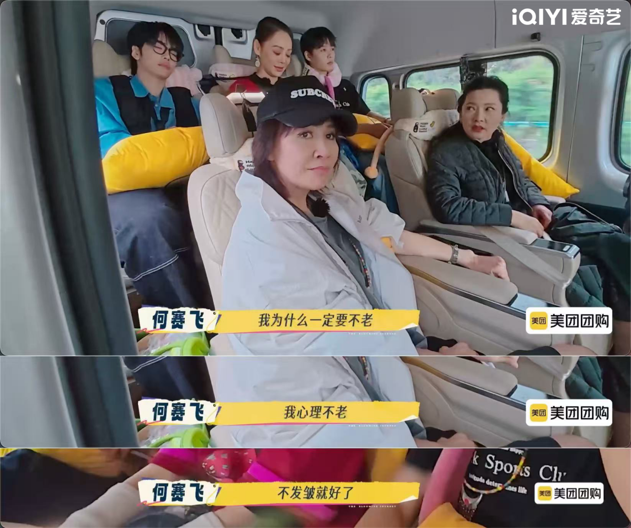 在行车途中,姐弟们依旧保持“繁花”态度大胆开麦。面对“中老年演员无戏可拍”的行业现实,何赛飞直言不讳指出,当下影视作品过度追求年轻化叙事,导致中老年角色空间被严重压缩。一句“我为什么要一直不老?我心理不老、不发皱就够了”道出无数从业者的心声。当谈及演艺圈盛行的医美风潮,何赛飞从戏剧表演的专业角度指出,过度依赖医美容易导致演员面容趋同,削弱角色辨识度;而宁静则直接反驳“人是自己的,他有权利做任何事情”,认为选择医美与否是个人自由。两人针锋相对的观点碰撞,使“审美自由”“职业要求”等多维讨论得以全面展开。这场不遮掩、不迎合的对话,不仅呈现了中年女演员在年龄、职业与自我价值之间的真实拉扯,也让观众有机会窥见演艺行业背后的结构性焦虑。