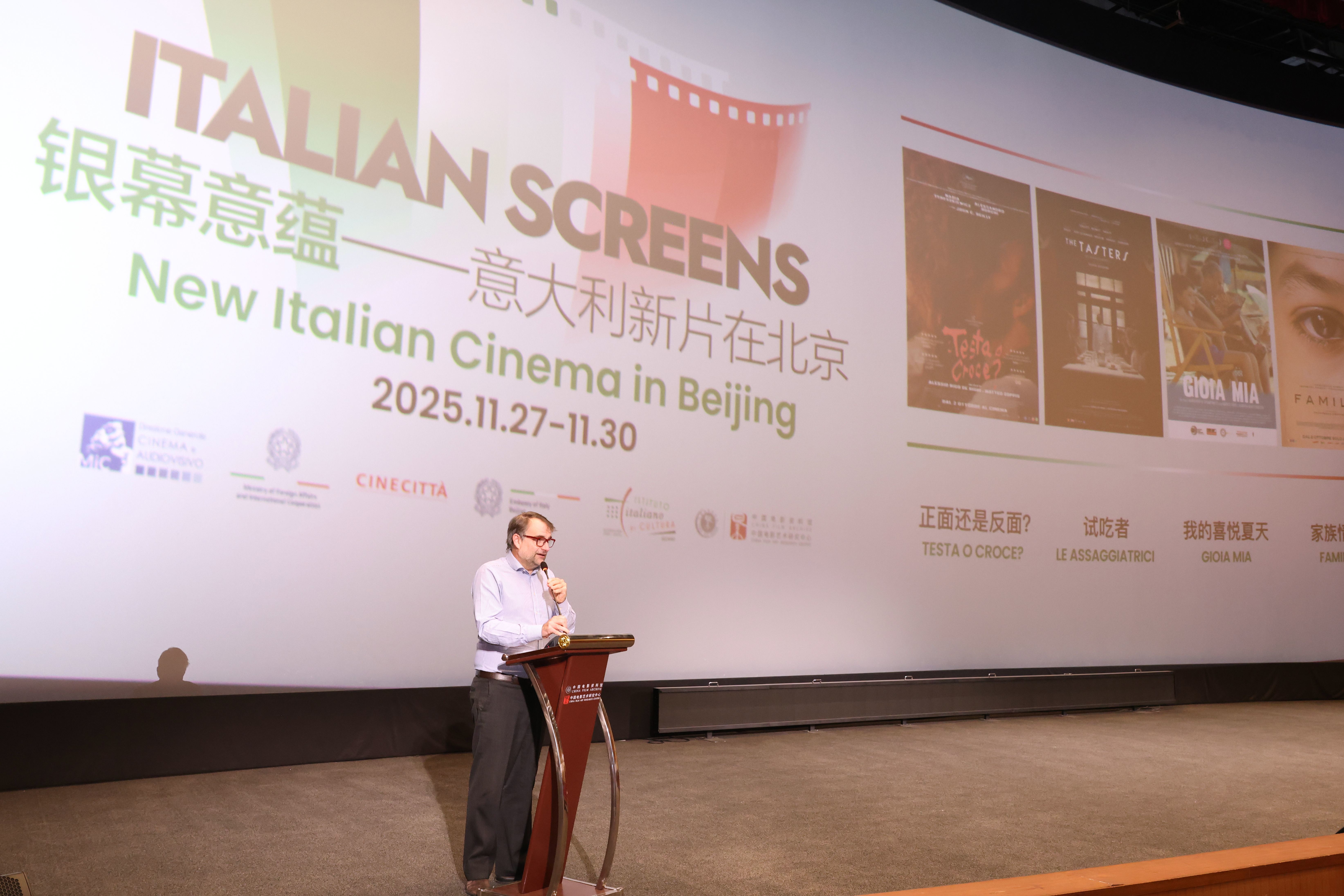 11月27日,2025“银幕意蕴——意大利新片在北京”于中国电影资料馆艺术影院拉开帷幕。本次意大利新片展由意大利文化部电影和视听总局(DGCA-MiC)、意大利外交与国际合作部(MAECI)、罗马电影城(Cinecittà)国际部携手意大利驻华使馆、意大利文化中心及中国电影资料馆共同举办。自开幕日起至11月30日,集中献映《正面还是反面?》《试吃者》《我的喜悦夏天》《家族情仇》四部意大利最新力作,为北京观众呈现一场意大利电影盛宴。