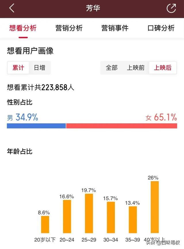 数据揭晓真相,《花样年华》重映,想看用户画像中,20-24岁观众占35.3%,成为最大受众群体。40岁以上仅16.7%。刻板印象碎了。老片,不再仅仅是中老年回忆杀。