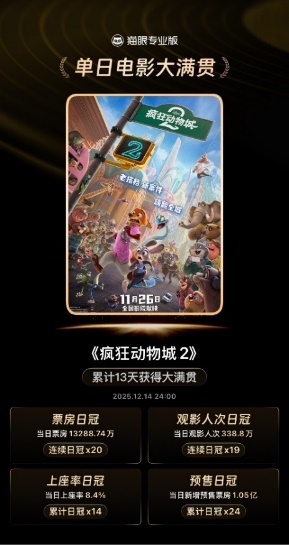 《疯狂动物城2》在上周末仍以绝对优势领跑电影市场。周末两天票房达3.32亿元,票房占比超80%,排片占比达60%,展现出其强大的市场号召力。截至目前,影片稳居2025年贺岁档票房榜榜首,同时还跻身2025年院线电影票房总榜第三。不少观众二刷后评价“动画质感与故事深度依旧在线”,让票房与口碑形成持续的良性循环。