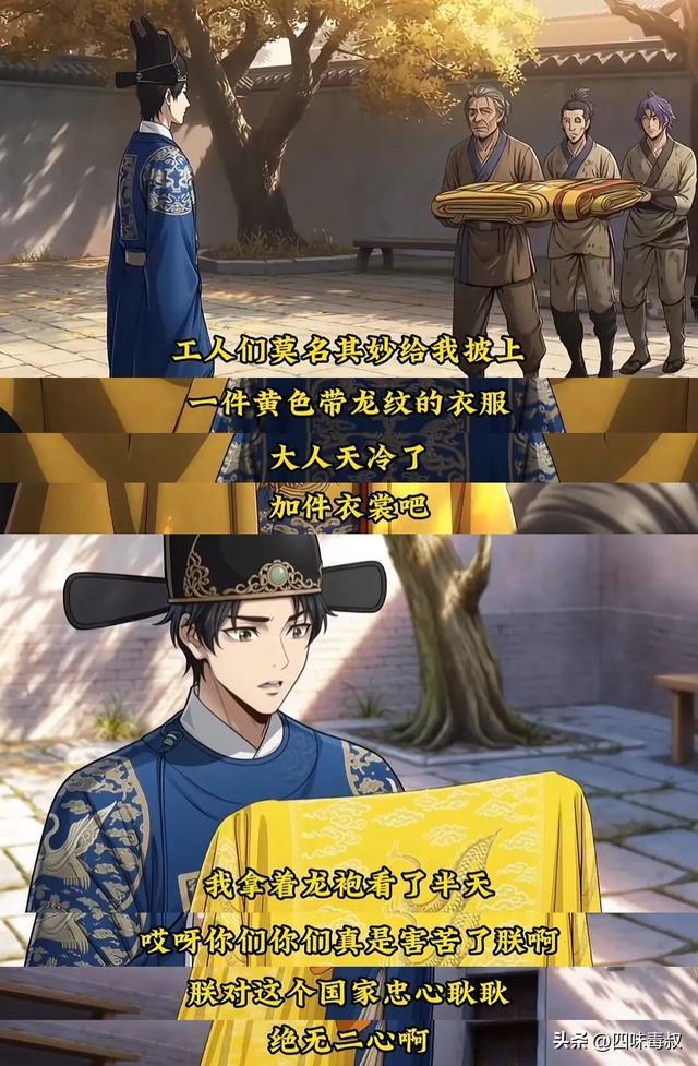 终于有一天,男主一觉醒来,发现众人捧着一件绣着龙纹的黄色袍子送到自己面前,说“大人,天冷了,该加件衣服了……”男主也无一例外地表示“你们可害苦了朕啊,朕是忠臣啊……”